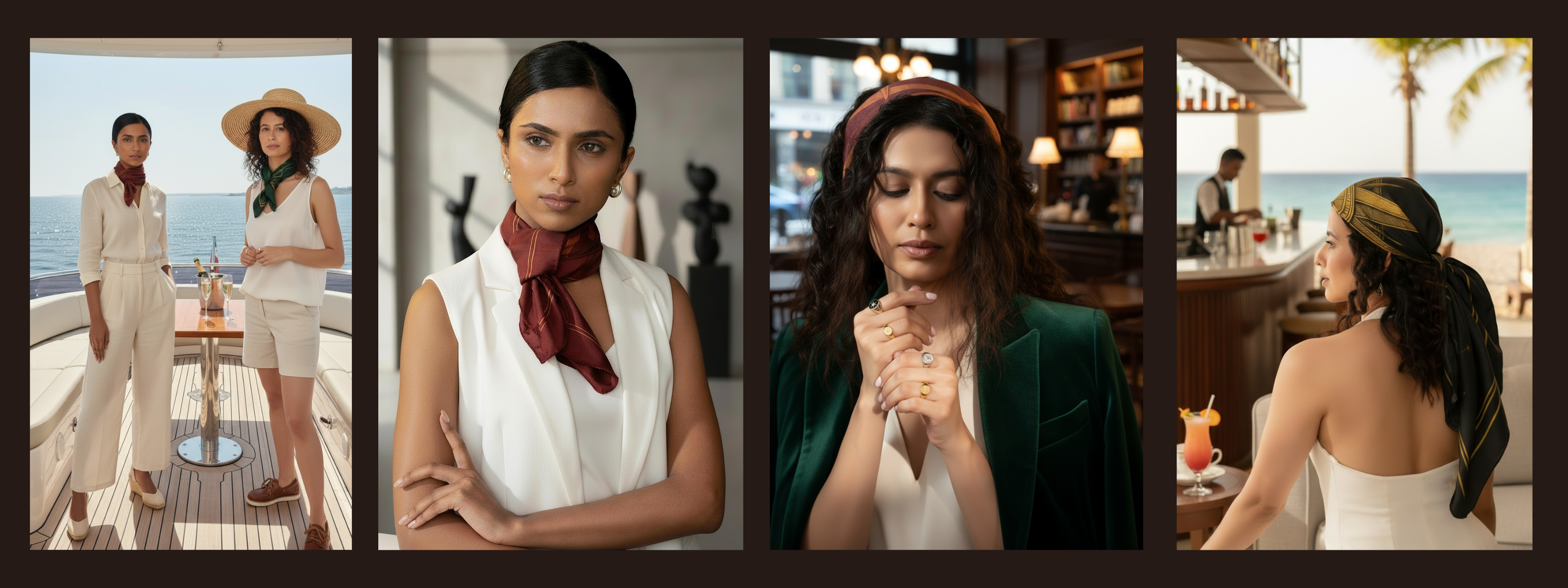 Discover our collection of exquisite 100% mulberry silk scarves, crafted to bring luminosity, colour, and quiet confidence to any ensemble.