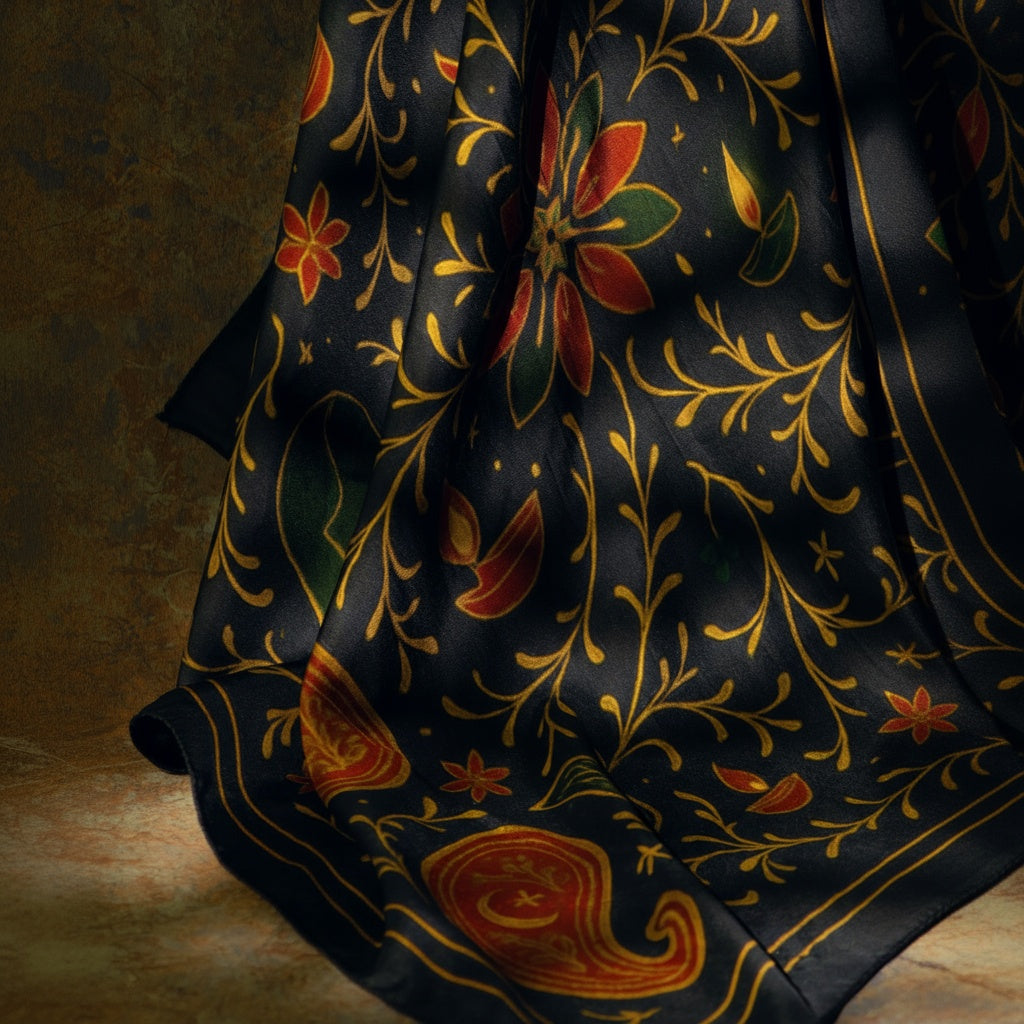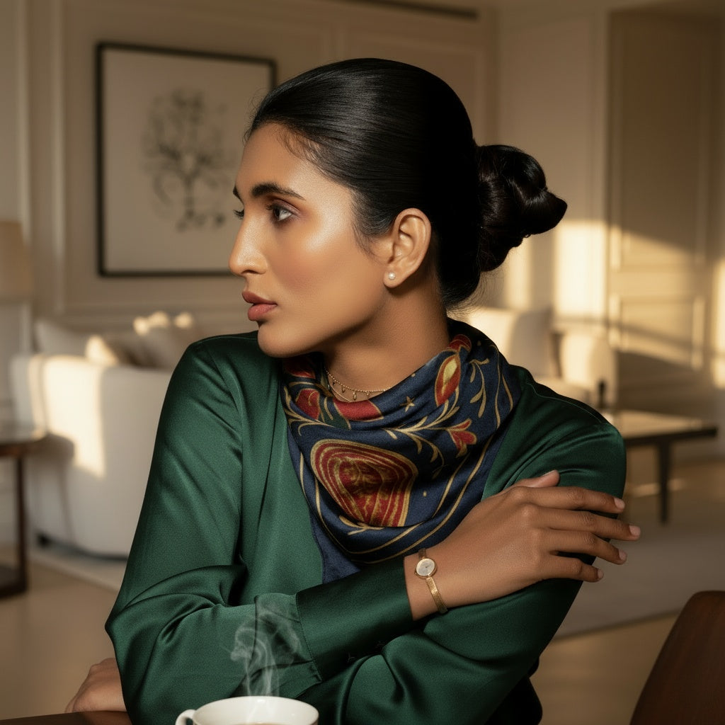 This combination of heritage silk and fine twill craftsmanship creates a scarf that feels luxurious on the skin.