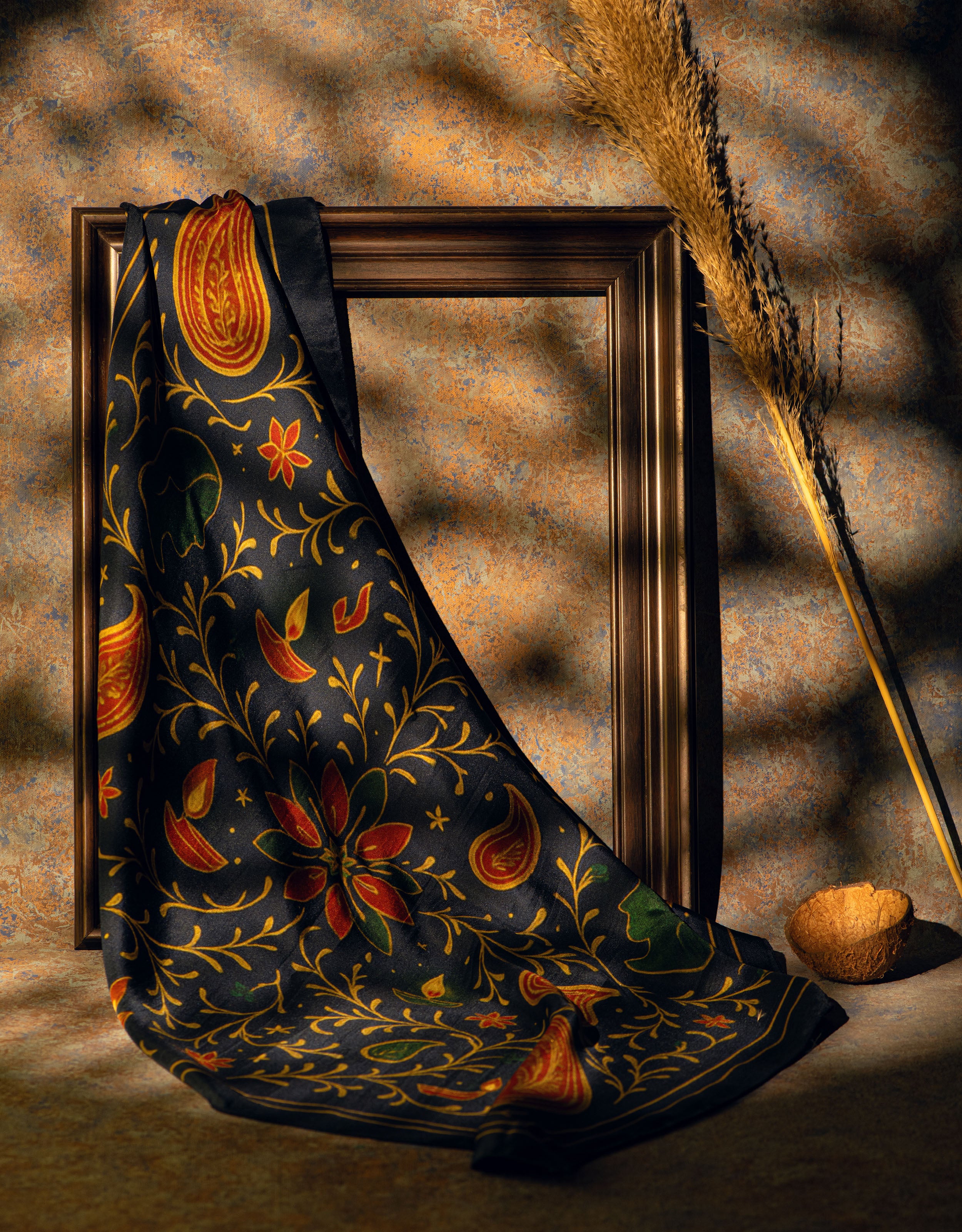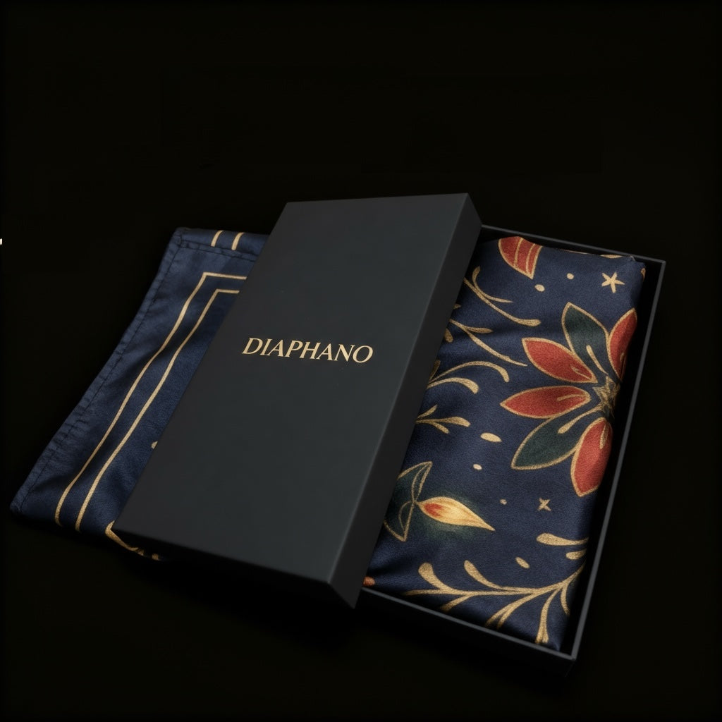 Each Diaphano scarf is woven from premium Indian mulberry silk—renowned for its softness, lustre, and remarkable lightness. The twill weave gives the fabric its subtle diagonal texture, allowing it to drape effortlessly while holding colour with exceptional depth.